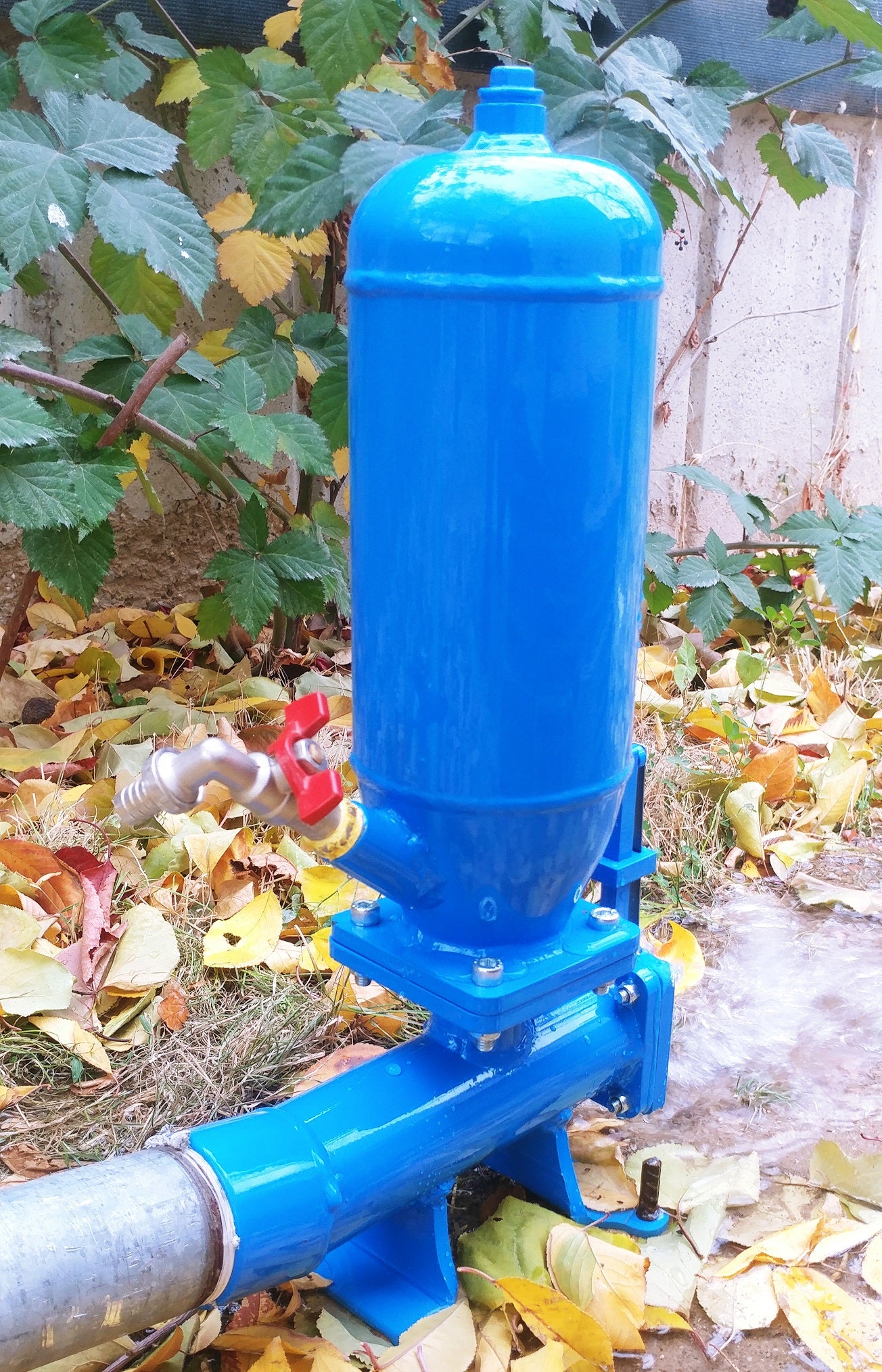 The water ram (hydraulic ram) is a water pump that generates its own driving energy. It is used to irrigate fields and water domestic animals and livestock. It is also suitable for domestic water supply and is used for this purpose.